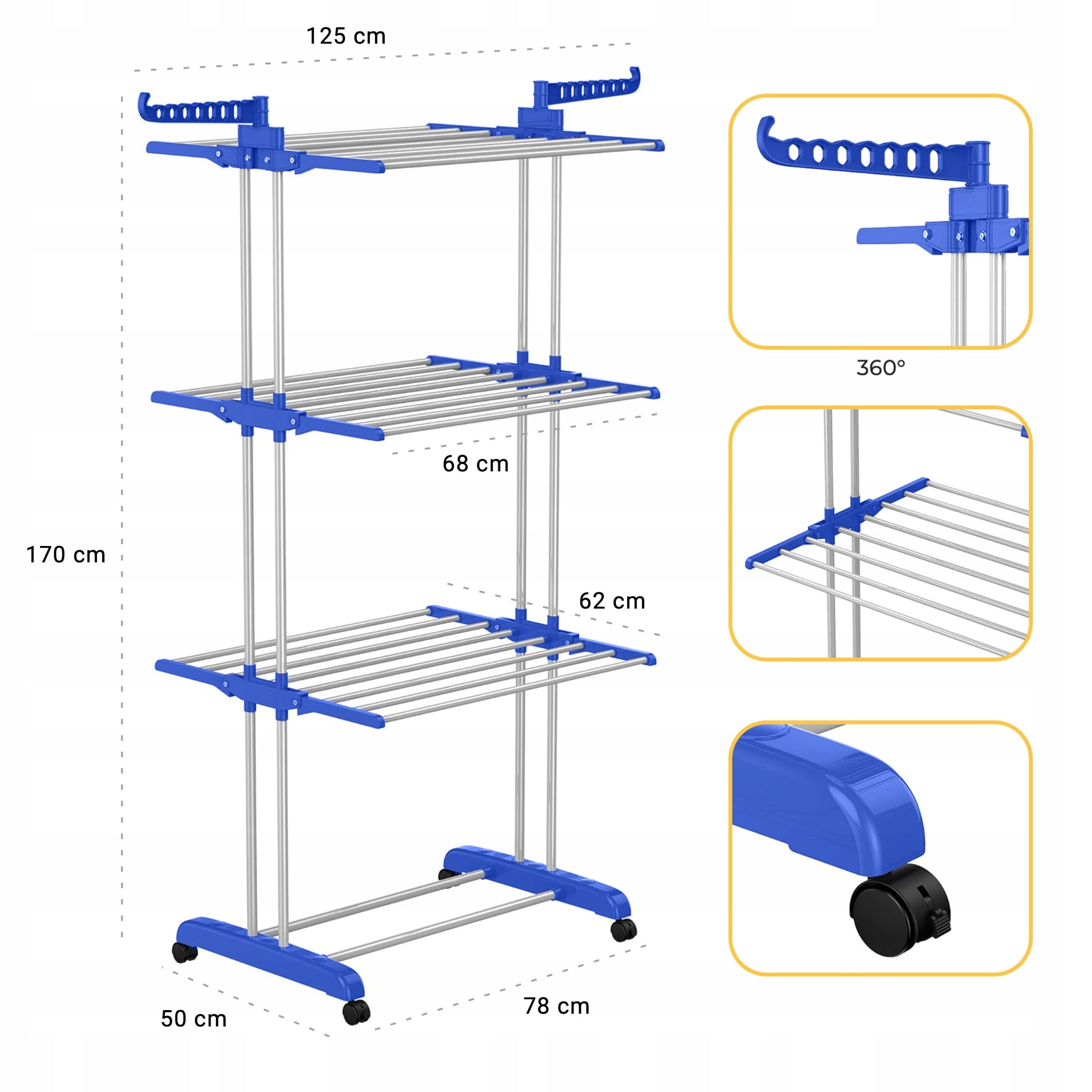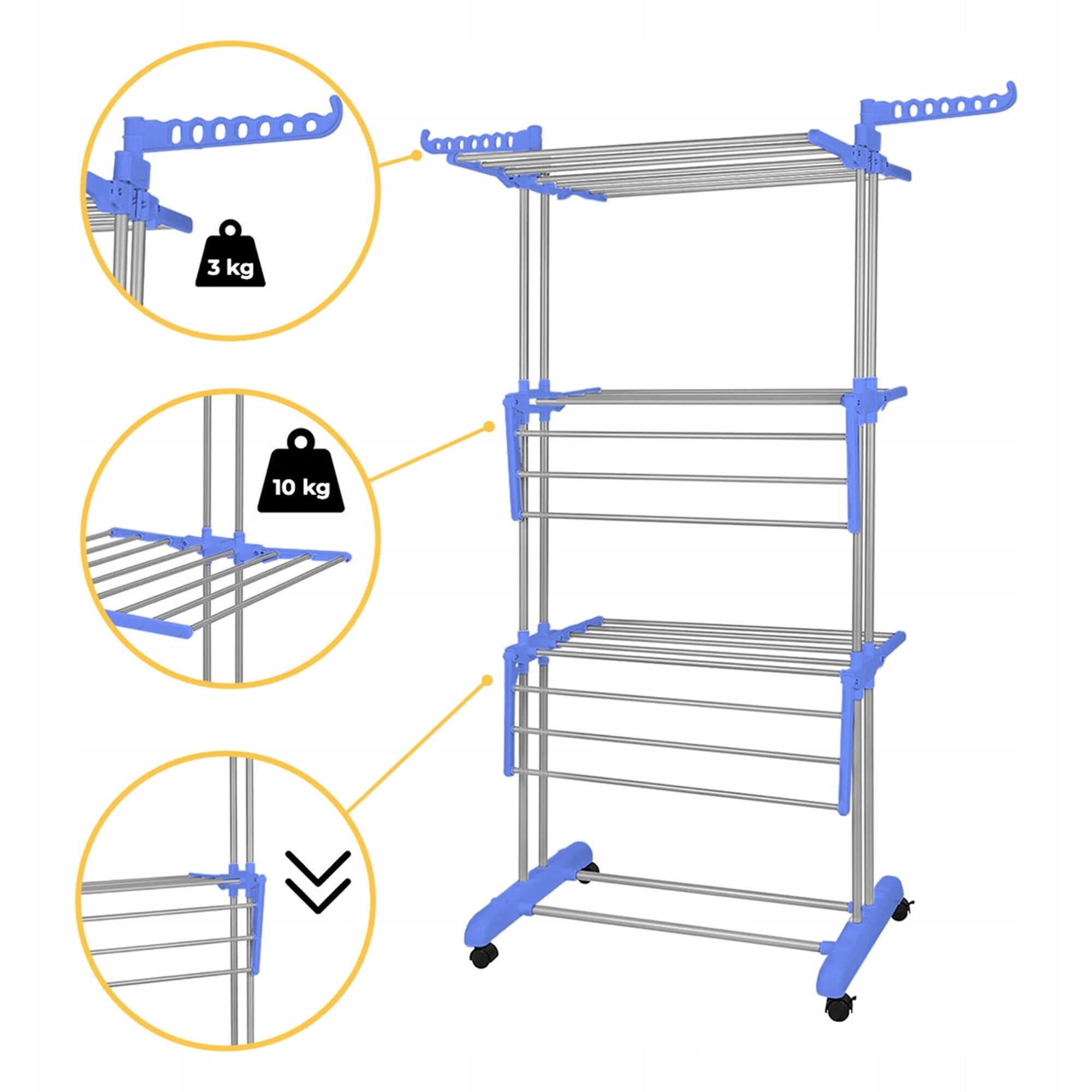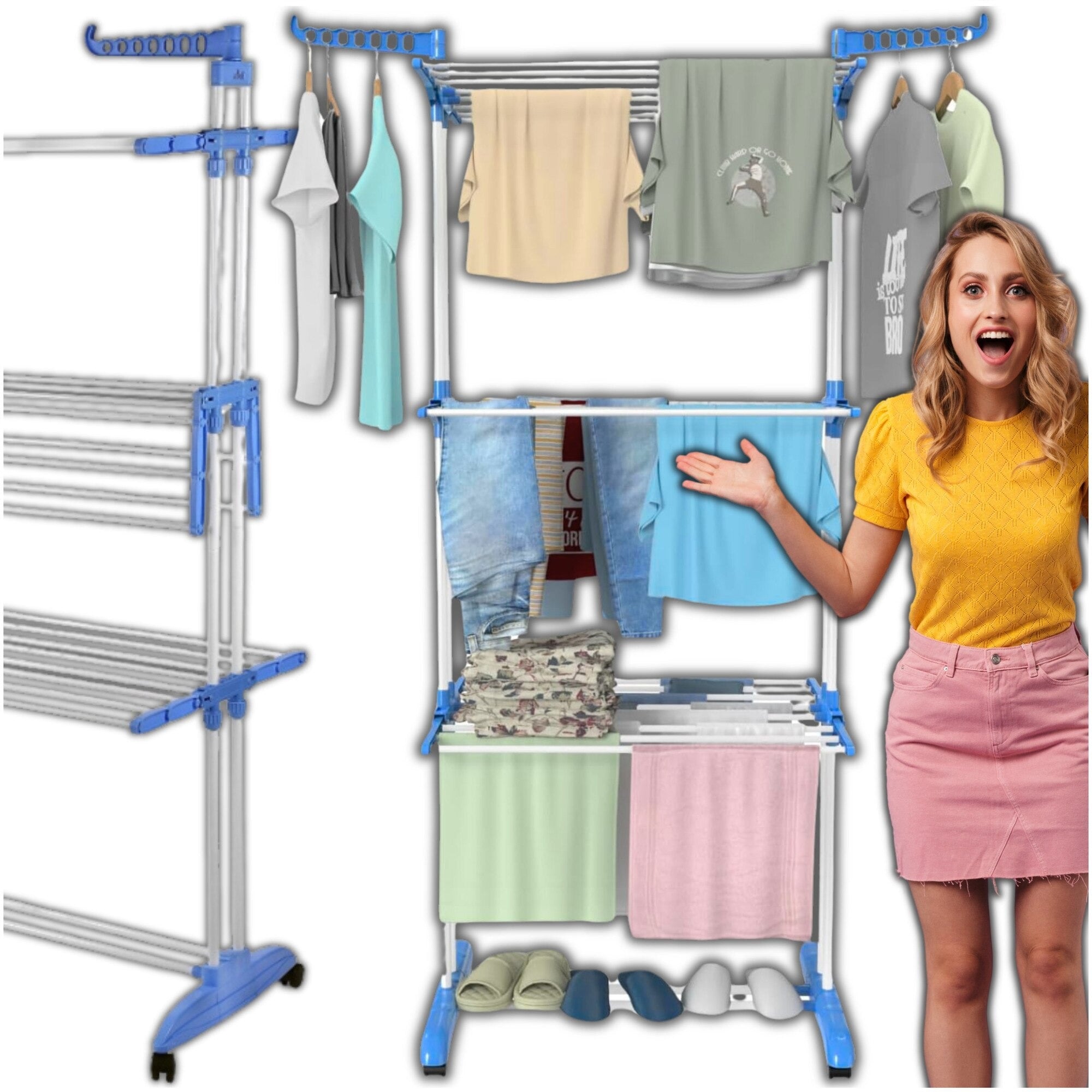 Organizează-ți mai bine spațiul și usucă mai multe haine simultan cu acest uscător vertical, mobil și pliabil. Designul pe trei niveluri și suporturile dedicate pentru ciorapi îl fac ideal pentru orice locuință, de la apartamente mici la case spațioase.